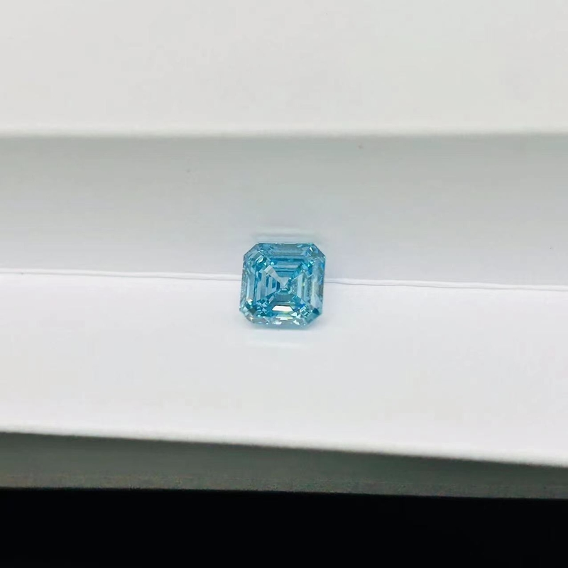 空想Asscherは0.89ct IGIが証明した実験室によって育てられた青いダイヤモンドを切った
