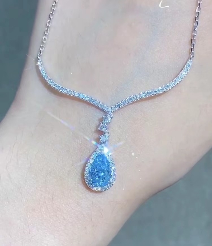 ブルーピアス 18K ホワイトゴールド ダイヤモンド 透明性 VVS2 ジュエリー 生産 婚約 ジュエリーラボ ダイヤモンド ネックレス