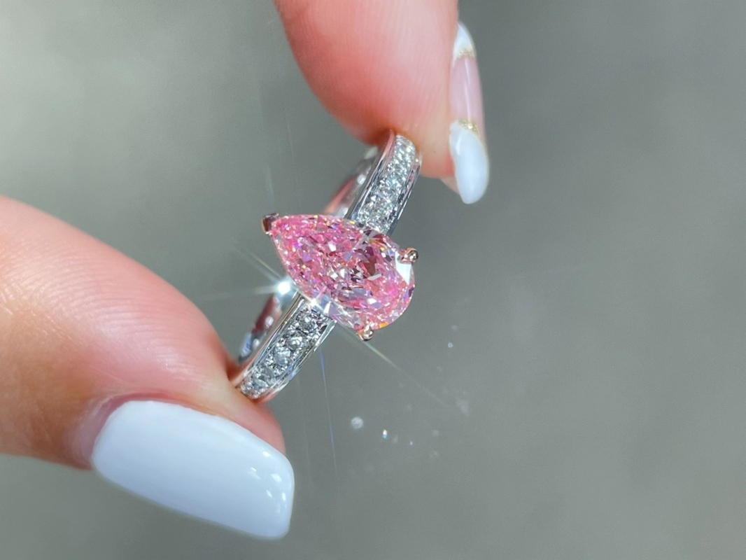 IGI認定 1.5ct 実験室で作成された cvd ピンク合成ダイヤモンド 梨の形 18k 白金の婚約指輪