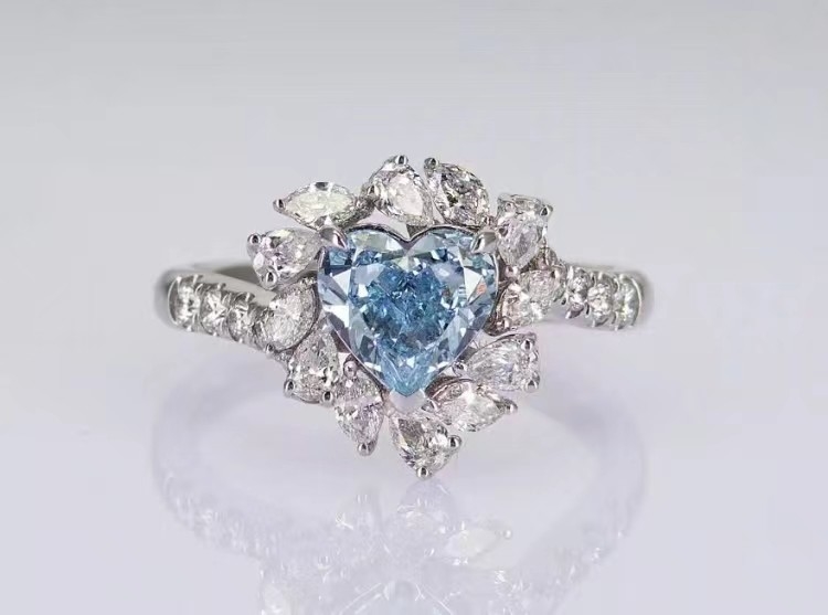 ラボ ダイヤモンド 宝石 ブルー ハート カット 婚約指輪 結婚指輪 おしゃれ ダイヤモンド 指輪