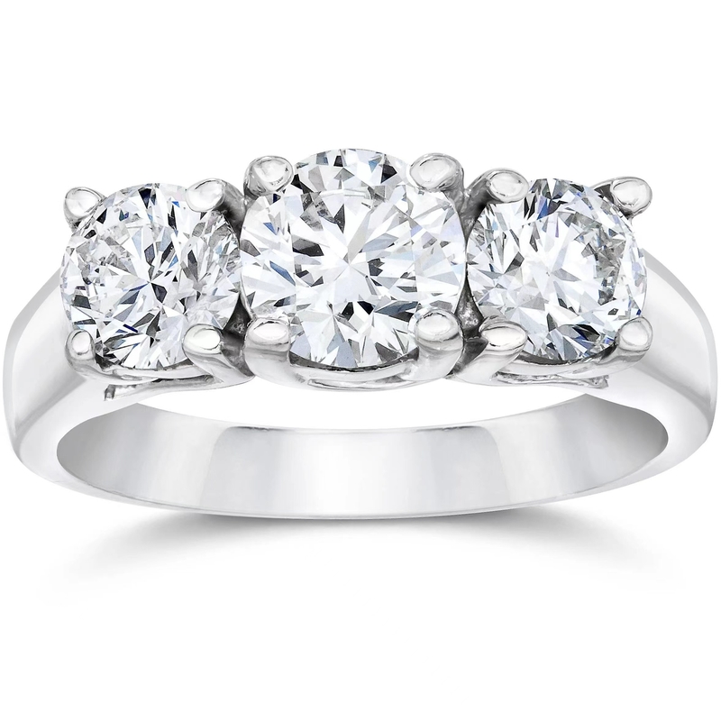 実験室で育てたダイヤモンド 宝石 クラシックスタイル 3つの石 白い丸い形 結婚指輪 丸いダイヤモンド指輪 パーティーや記念日