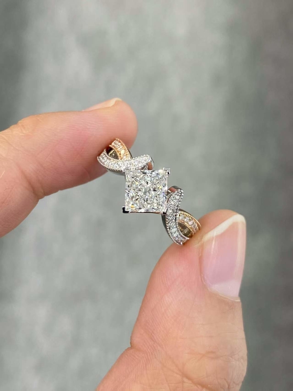 1.2ct プリンセスカット ホワイトラボダイヤモンド 18K ホワイト&ローズゴールド エンゲージリング