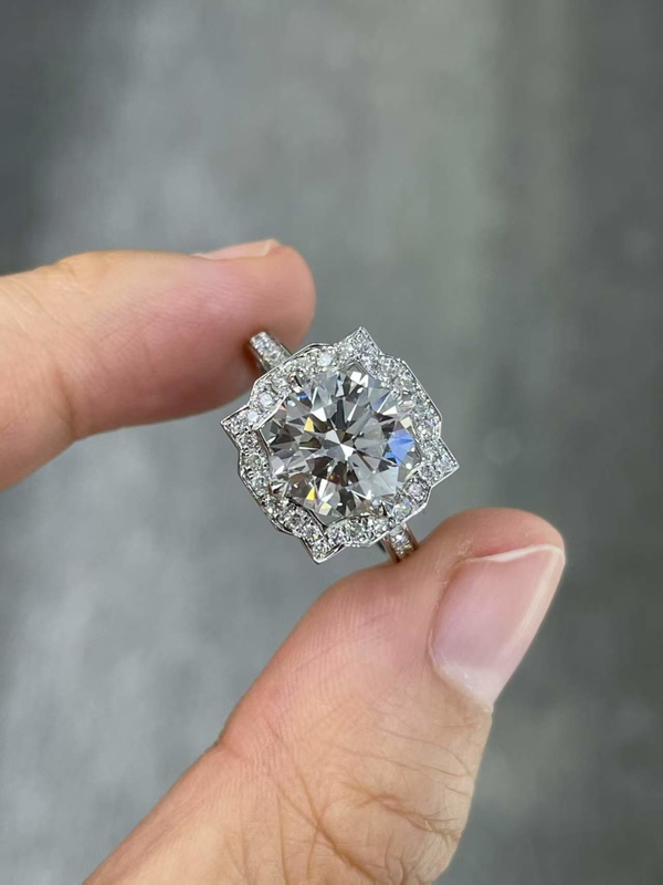 実験室で育てたダイヤモンド 宝石 白い丸い形 結婚指輪 丸いダイヤモンド指輪 パーティーや記念日