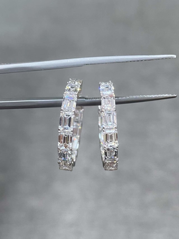 5.38ct スメラルド形ダイヤモンドのイヤリング DEF VVS ラボ成長ダイヤモンド PT950